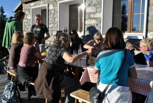 Etwas weiter oben - wenige Marschminuten oberhalb der Gondel-Bergstation - war bereits der nächste Apéro dran: